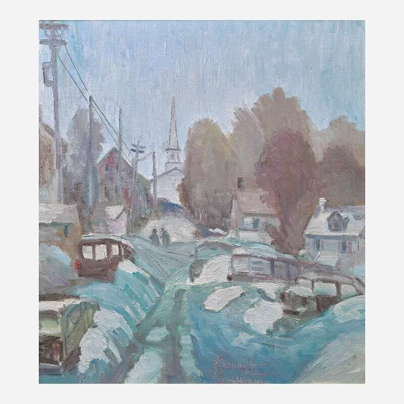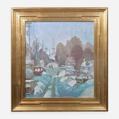 Joseph Barrett (American, b. 1936) Lambertville Church in Snow
