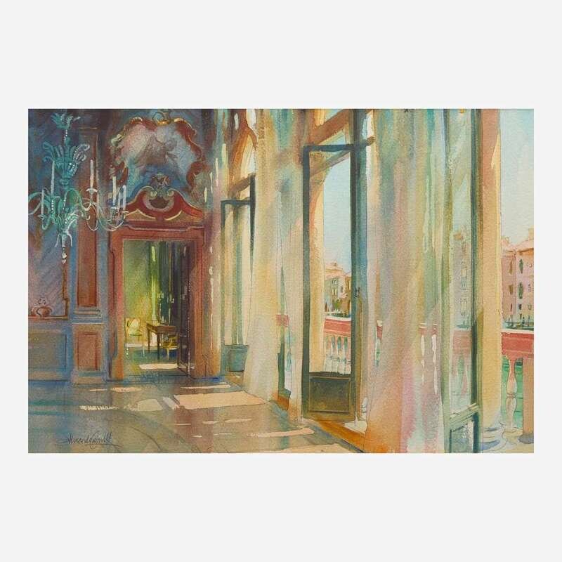 Alexander Creswell (American, b. 1957) / American School (20th Century) Portego in Palazzo Pisani Moretta, Venice, Italy / Beach at Dusk