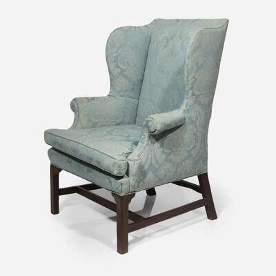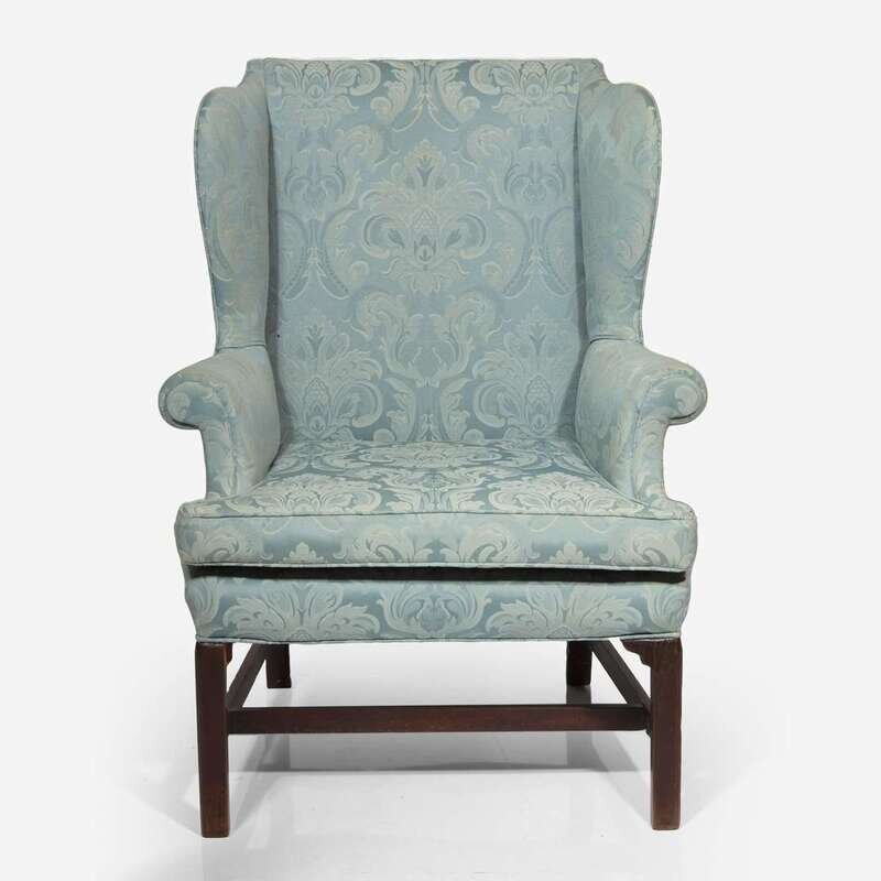 With Marlborough legs and stretchers, contemporary damask upholstery.