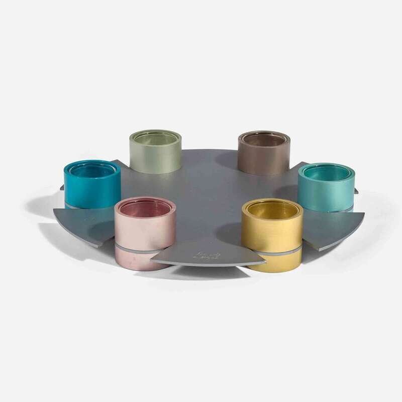 Together with a Wall Design multicolored menorah by Agayof Judaica of Jerusalem in storage box.