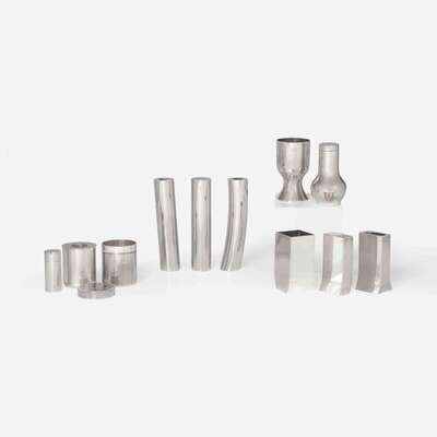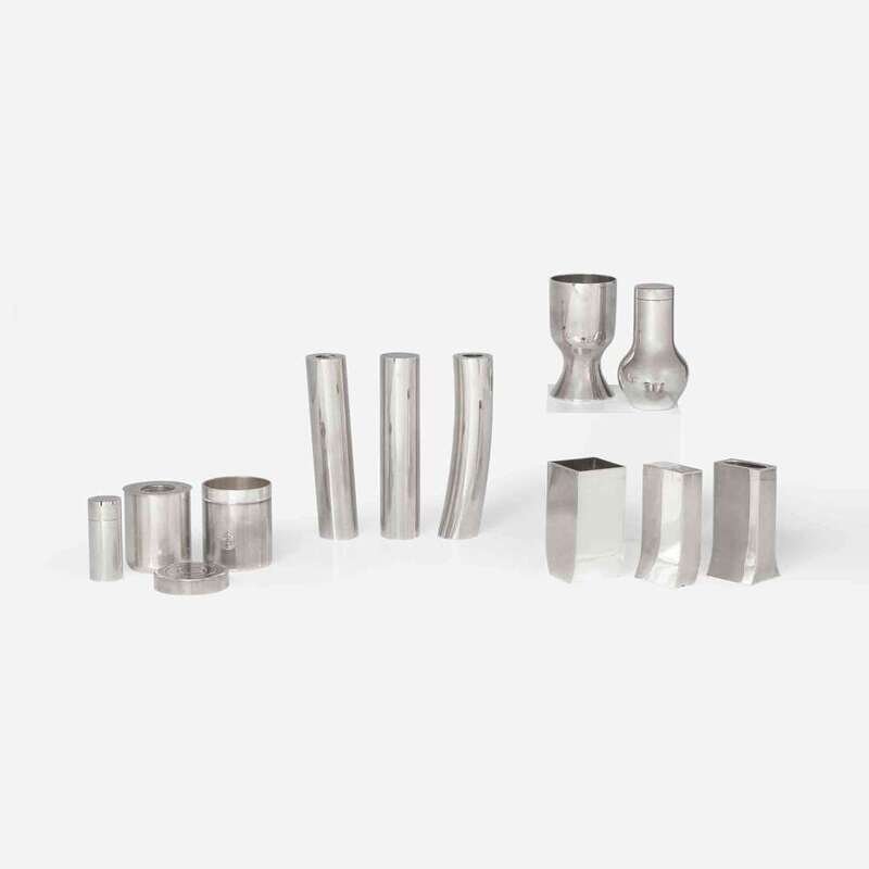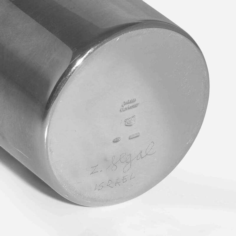 Comprising a Havdala set, signed, "Z. Segal Israel," and marked "Judaica Heirlooms" and "925;" a two-piece Kiddush traveling set, the covered vessel signed, "Z. Segal" and marked "925;" a set of three Shabbat candlesticks, one signed and dated, "Z. Segal Israel 1994," all three marked "925;" and a three-part Havdala set, one piece signed and dated, "Z. Segal Israel 1994," and all three marked "925."