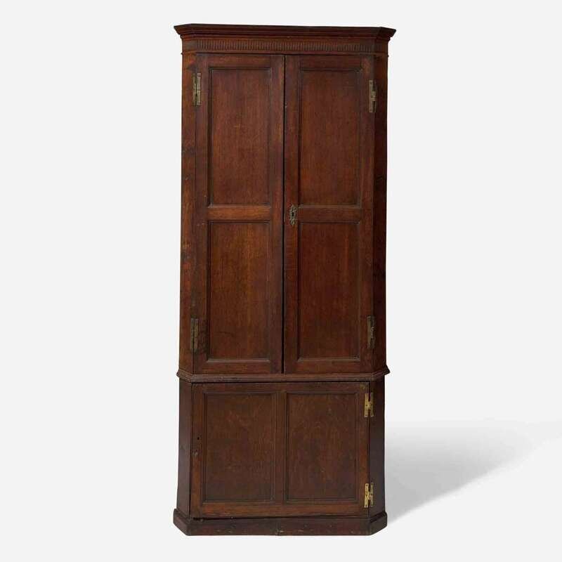 A George III carved oak corner cupboard late 18th century