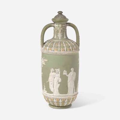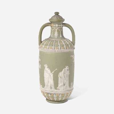 A Wedgwood jasper dip tricolor diceware covered vase 19th century