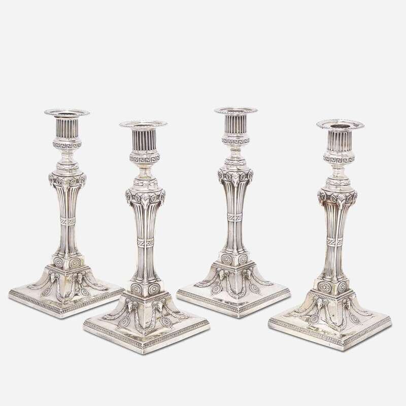 A set of four George III sterling silver weighted candlesticks John Carter II, London, 1774