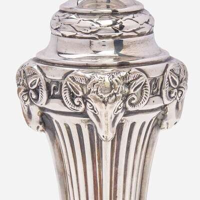 In the Greek Revival style, decorated with rams' heads and laurel swags, monogrammed, "ASL." (4).