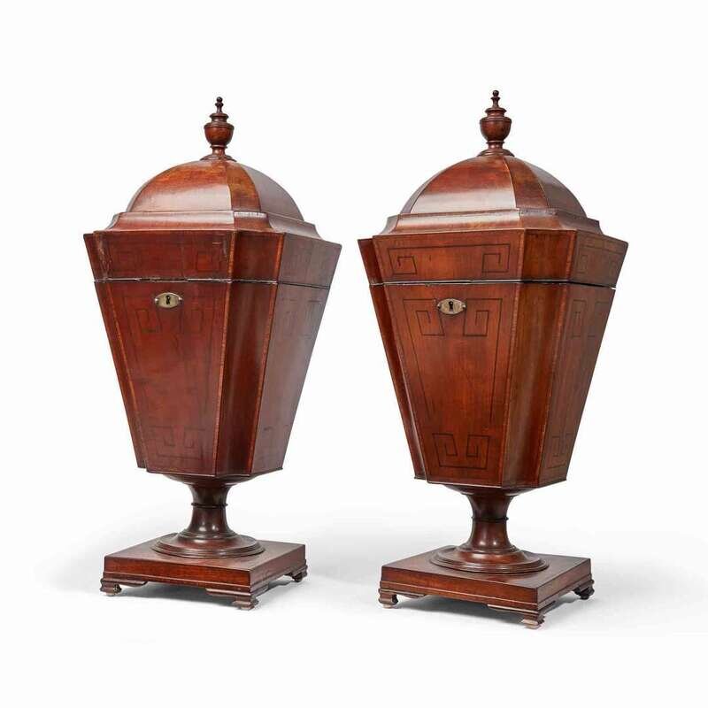 A pair of Regency inlaid mahogany knife boxes early 19th century