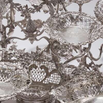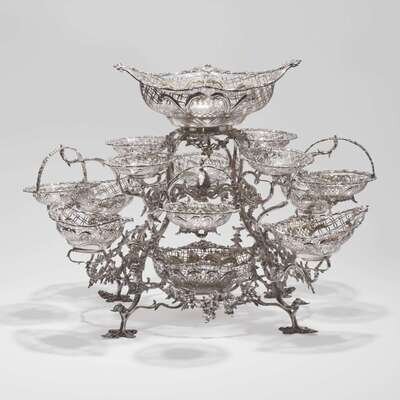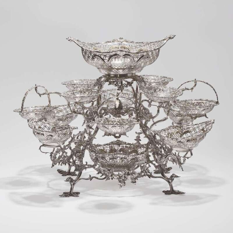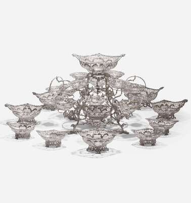 A Victorian sterling silver fourteen-basket epergne Francis Boone Thomas, London, 1884