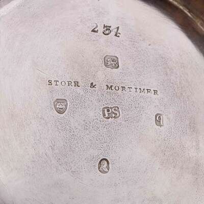 Surmounted with acorn finial, engraved to one side with armorial crest.