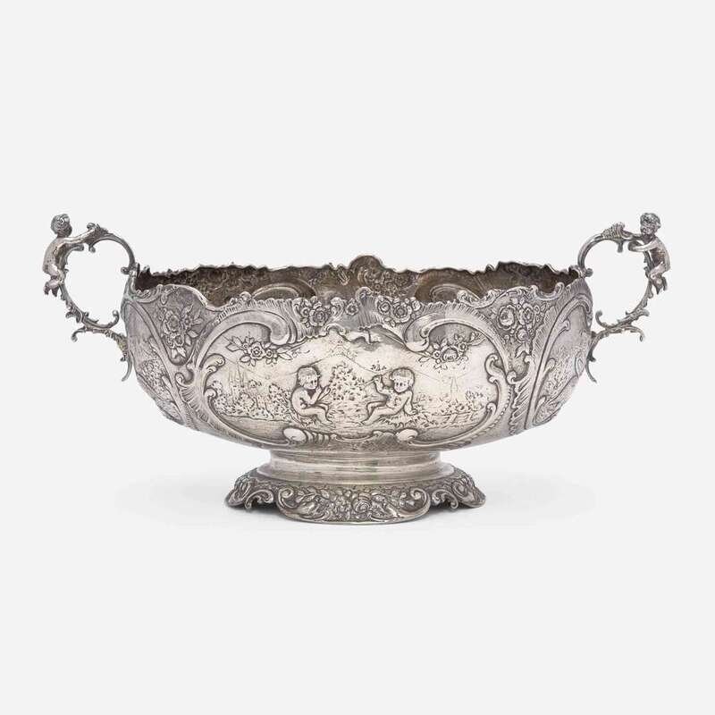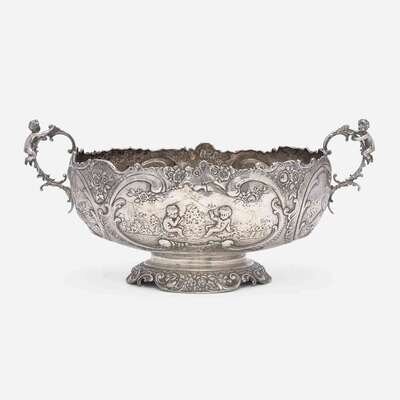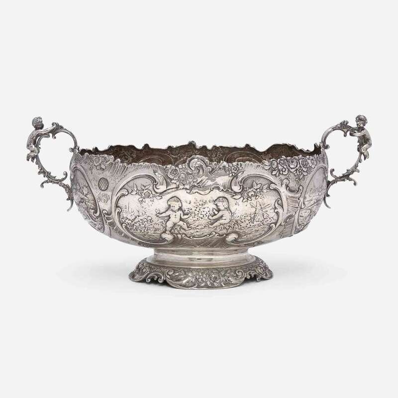 A Continental silver repoussé two-handled centerpeice Likely German, late 19th century
