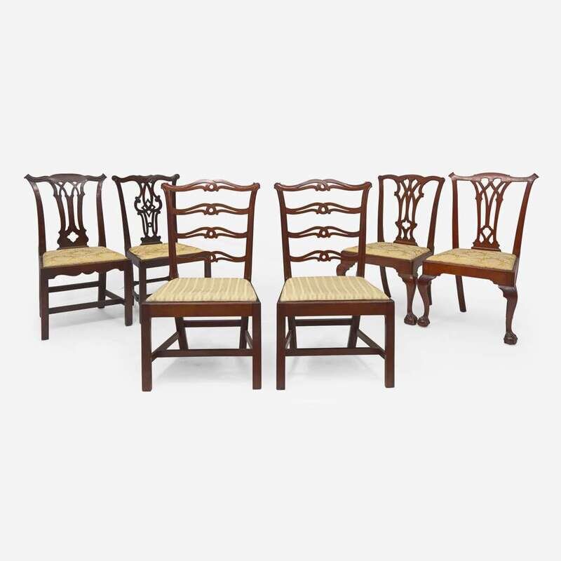 An assembled group of six Chippendale carved mahogany and walnut side chairs Philadelphia, PA, late 18th century
