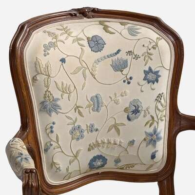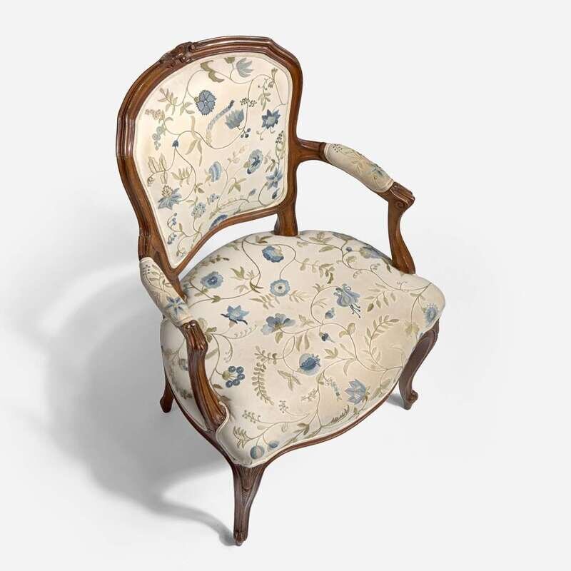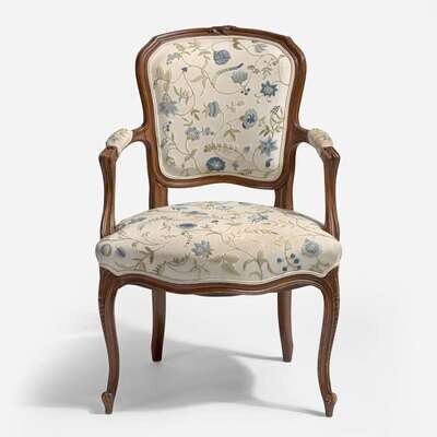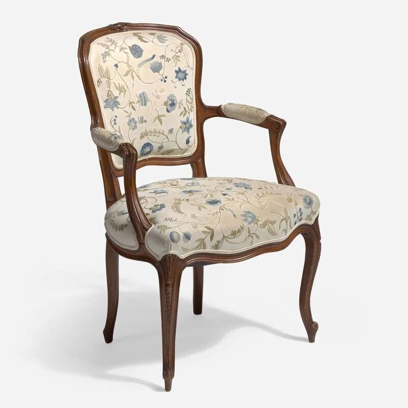 With Embroidered Upholstery by Erica Wilson (American, 1928-2011) Louis XV Style Fauteuil, USA, 20th century