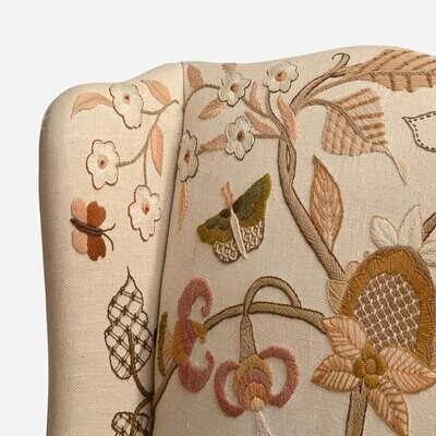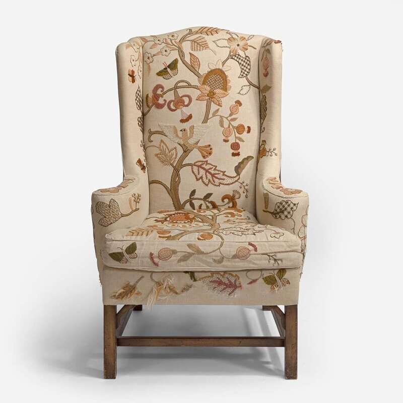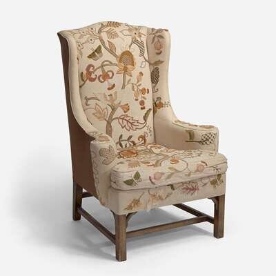 With Embroidered Upholstery by Erica Wilson (American, 1928-2011) George III Style Wing Chair, USA, 20th century