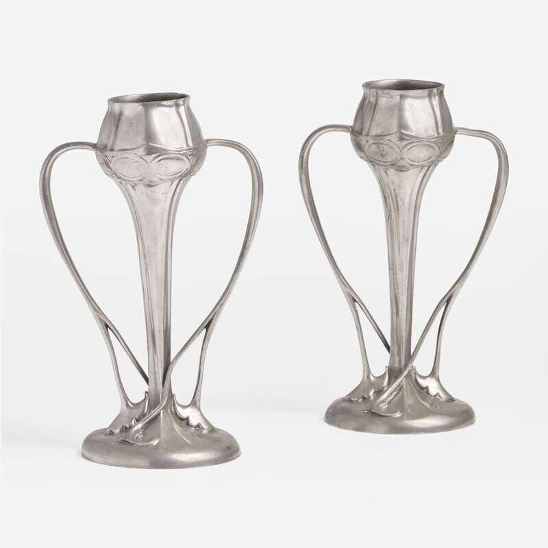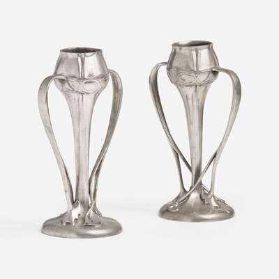 Archibald Knox for Liberty & Co., London Pair of Pewter Twin Handled "Tulip" Vases, England, circa 1903