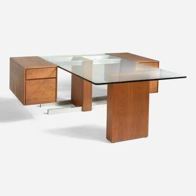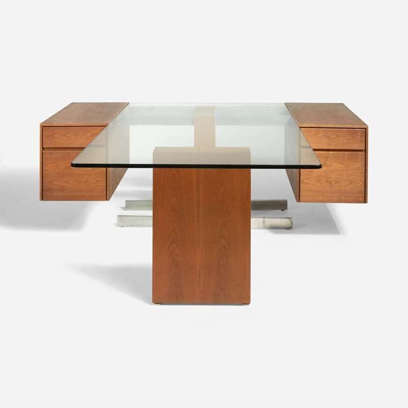 Vladimir Kagan (American, 1927-2016) Glass-Top Cantilevered Partner's Desk, 6990 Series, USA, circa 1970