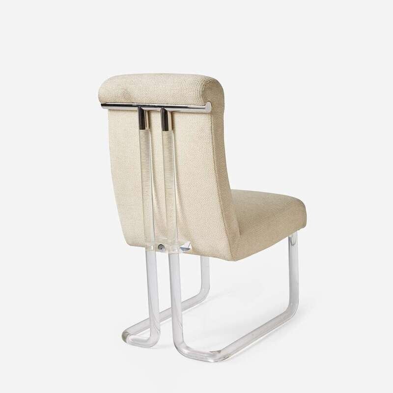 The Tatyana side chair in acrylic, chrome plated metal, textured fabric upholstery