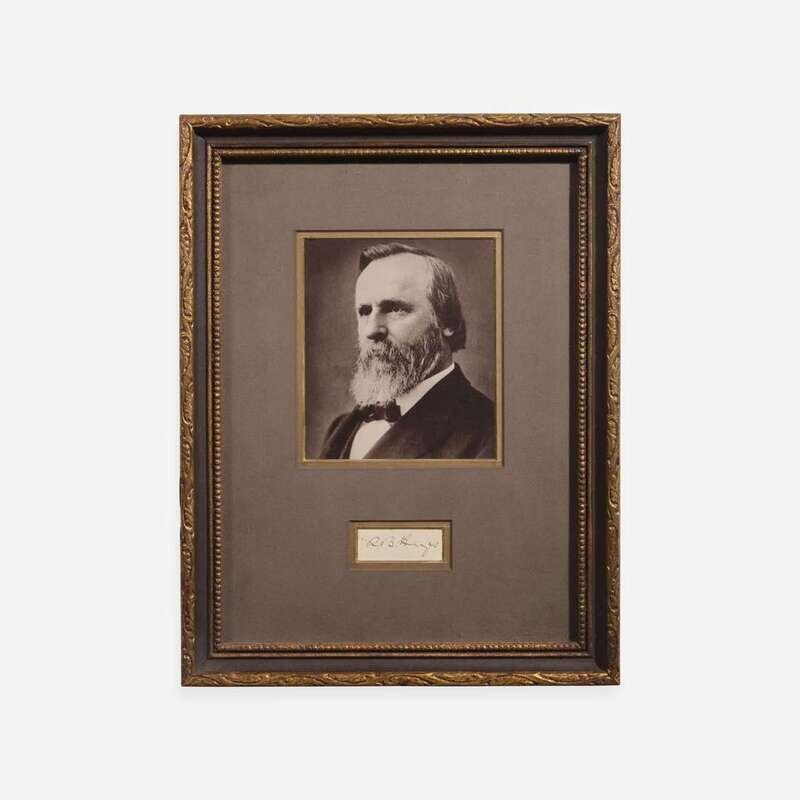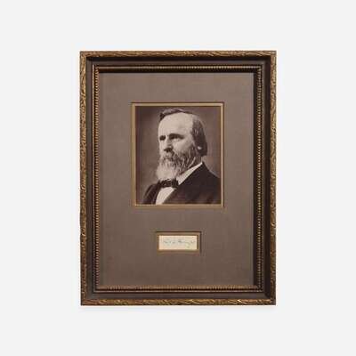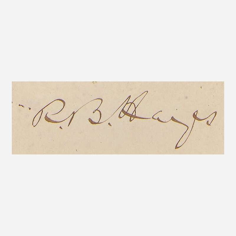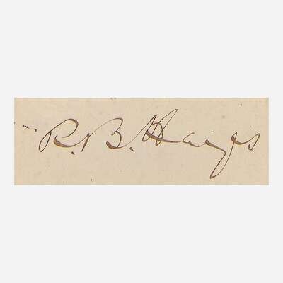 No place, no date. Cut signature ("R.B. Hayes"); 1 x 2 1/4 in. (25 x 64 mm). Light ink stains. In mat with a portrait of Hayes, and in frame, 14 1/4 x 11 in. (362 x 279 mm).