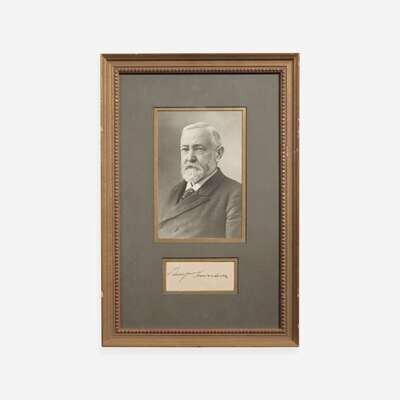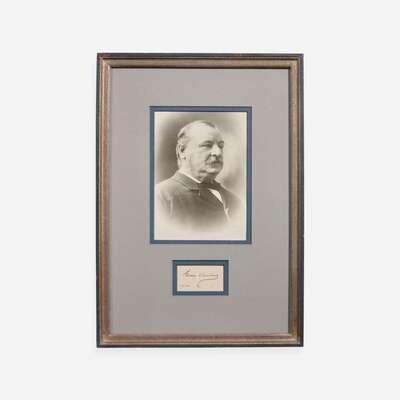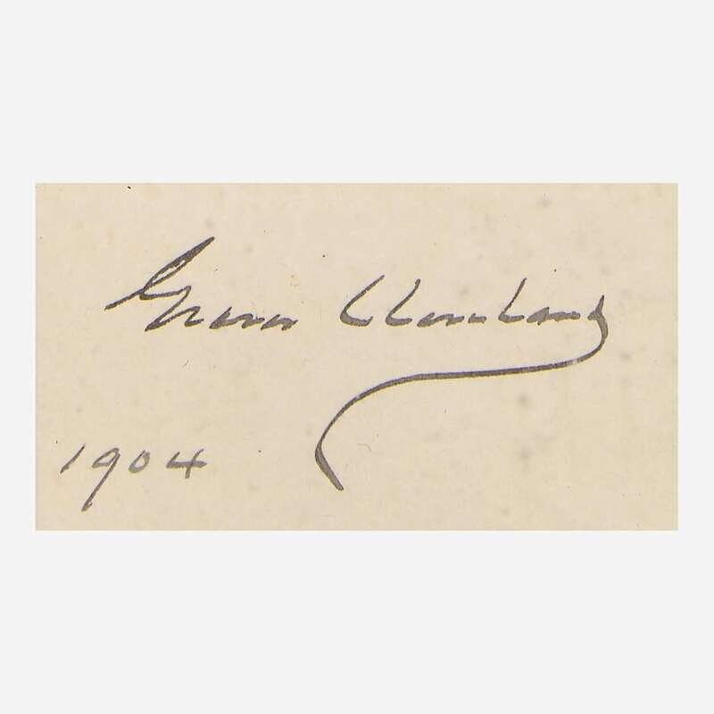 No place, 1904. Cut signature ("Grover Cleveland"); 1 1/4 x 2 1/4 in. (32 x 57 mm). In mat with a portrait of Cleveland, and in frame, 14 1/4 x 10 in. (362 x 254 mm).