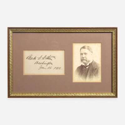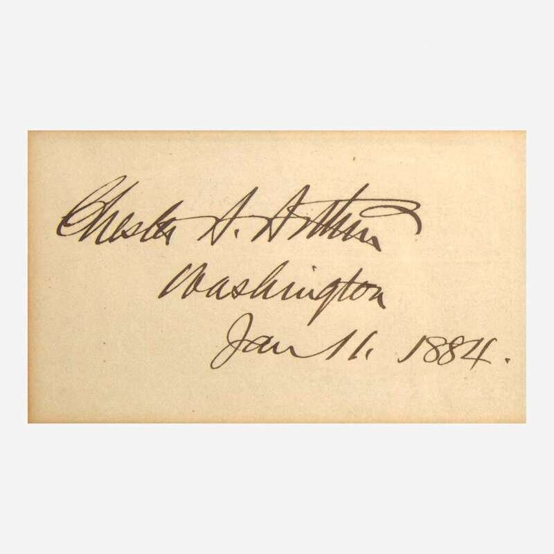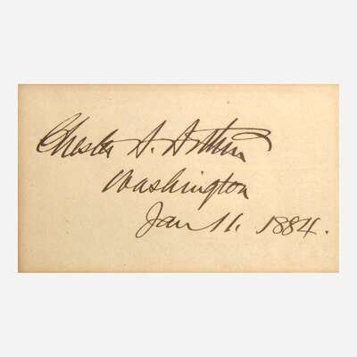 Washington (D.C.), January 11, 1884. Cut signature ("Chester A. Arthur"); 3 x 5 in. (76 x 127 mm). In mat with a portrait of Arthur, and in frame, 8 5/8 x 13 3/8 in. (219 x 340 mm).