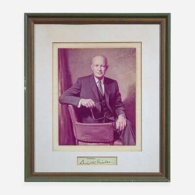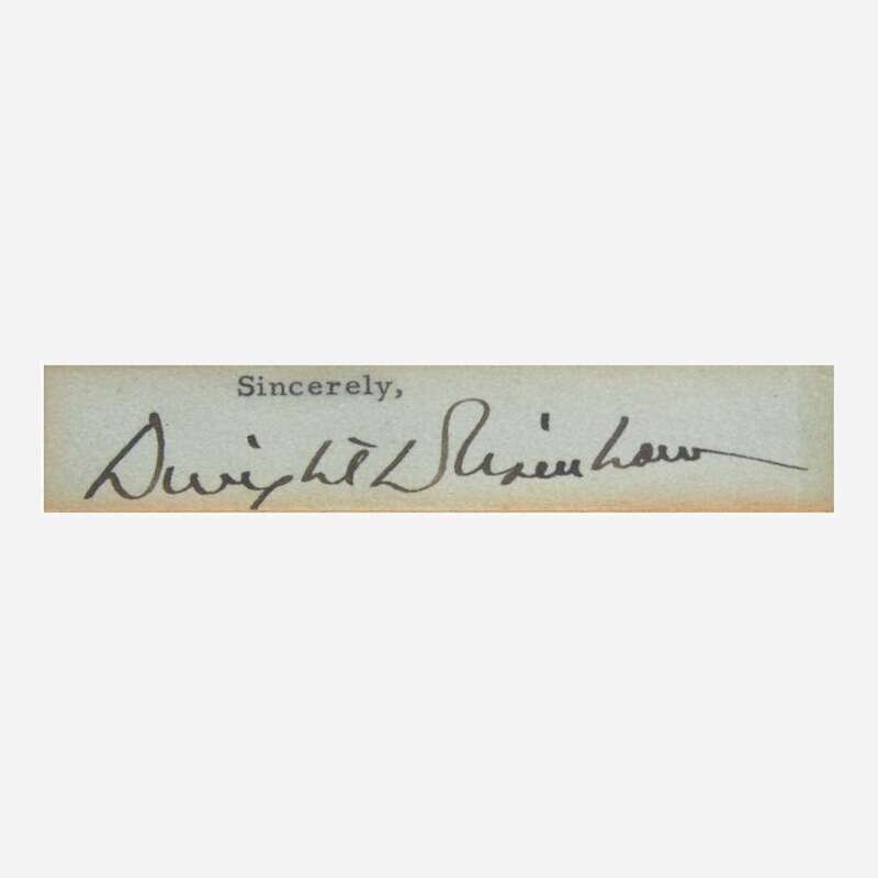 No place, no date. Signature cut from a typed letter; 3/4 x 4 in. (19 x 102 mm). In mat with portrait of Eisenhower, and in frame, 16 5/8 x 14 1/2 in. (422 x 368 mm).