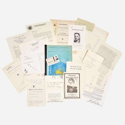 Atlanta, Georgia, ca. 1961-67. Two printed Christmas cards, one signed "'The Martin Luther Kings' Coretta, Martin, Yoki, Marty & Scotty", presumably in Coretta's hand; and one printed Christmas letter, dated December 1967, signed in print by the family; each with original postmarked envelope.