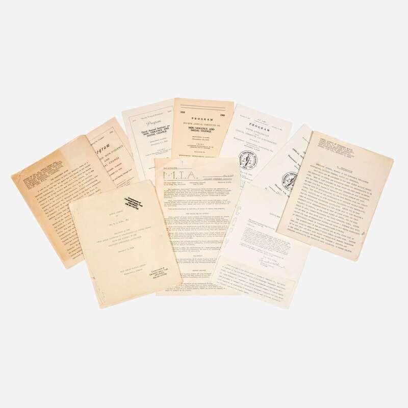 Montgomery, Alabama, December, 1959. Printed program for the "Fourth Annual Institute on Non-Violence and Social Change", sponsored by the Montgomery Improvement Association, held from December 3-6, 1959. 8vo. Unpaginated (8 pp.). Original limp printed self-wrappers; all edges trimmed; sheets loose from now-removed staple.