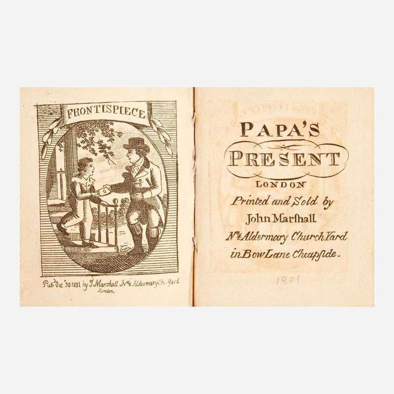 Rare. The above titles are presumed to have been issued singularly as they don't appear to be from any of Marshall's miniature libraries for children. We can locate only one copy of either title (Papa’s Present) to ever come to auction. OCLC locates only five institutions holding The Infants Delight: Princeton University Library; Toronto Public Library; Indiana University; Arizona State University Library; University of Oxford, and only a microform edition of Papa's Present.