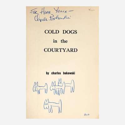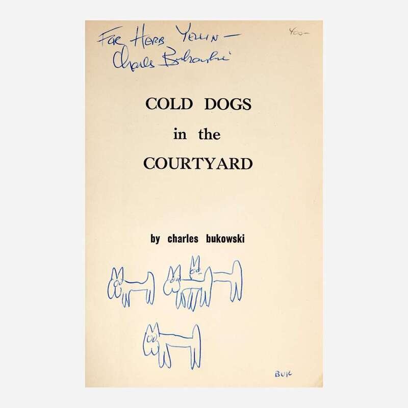 (Chicago: Literary Times and Cyfoeth Publications, 1965). First and limited edition, one of only 500 copies printed. 8vo. 23 pp. Association copy, inscribed by Bukowski on title-page to publisher and founder of the Lord John Press, Herb Yellin: "For Herb Yellin--/Charles Bukowski"; and with a doodle of four dogs, by Bukowski, and signed by him, "Buk", at bottom of same. Edited by Jay Nash. Original stiff staple-bound beige printed wrappers, stamped in black, with a cover illustration of dogs by Betsy Milam; all edges trimmed. Krumhansl 16