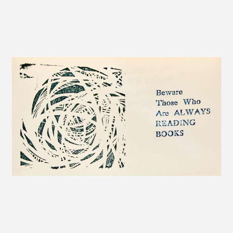 (Cleveland, Ohio: 7 Flowers Press, 1966). First edition (one of only 103 copies printed). 12mo. Unpaginated (22 pp.). Illustrated with four multi-colored linoleum cut prints by Paula Marie Savarino; text printed in letterpress, some on trimmed envelopes. Original stiff green wrappers, printed on front and rear wrapper in letterpress and linoleum cut print; all edges trimmed. Krumhansl 21
