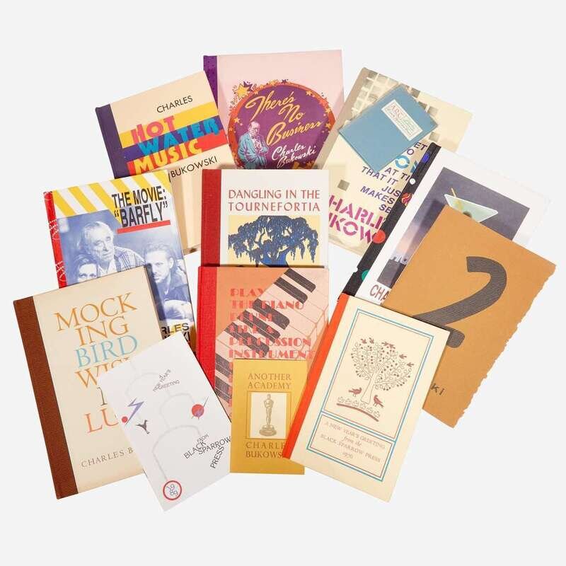 (Los Angeles): Black Sparrow Press, (1970). First and limited edition, #175/250 numbered copies signed by Bukowski. Printed broadside; in stiff printed mustard wrappers, stamped in brown, printed illustrated cover label. Krumhansl 35