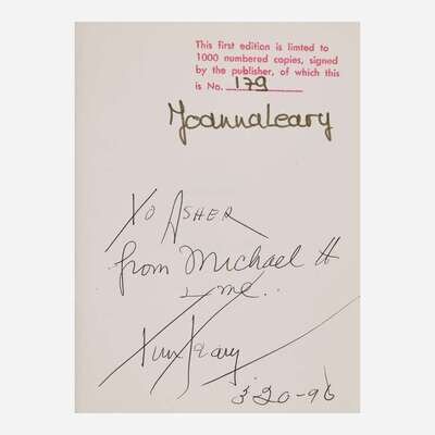 No place: Joanna Leary, 1973. First edition, first issue, #179/1,000 numbered copies signed by Joanna Leary. Inscribed by Timothy Leary on front blank, "To Asher/from Michael H & me../Tim Leary/3-20-96." Original stiff printed glossy paper wrappers, scattered light soiling; all edges trimmed. Horowitz, Walls & Smith A13c