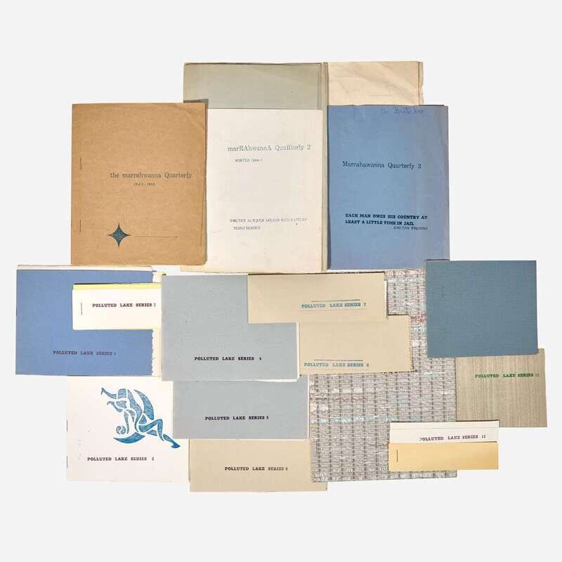 A well preserved and scarce set of the first three issues of the first volume of levy's influential poetry and literary review journal, featuring works from numerous contributors, including levy, Dave Rasey, George Montgomery, Allen Katzman, Donald Blazek, Kent Taylor, Marguerite Harris, Grace Butcher, George Bowering, and others. Each issue was constructed by levy by hand using a variety of colored and textured paper stock and scraps, and printed using a combination of letterpress and mimeograph. The Marrahawanna Quarterly was published by levy's Renegade Press in 14 issues between 1964-68, and was often seized, along with other work from his press, by the Cleveland's police who deemed his publications obscene.