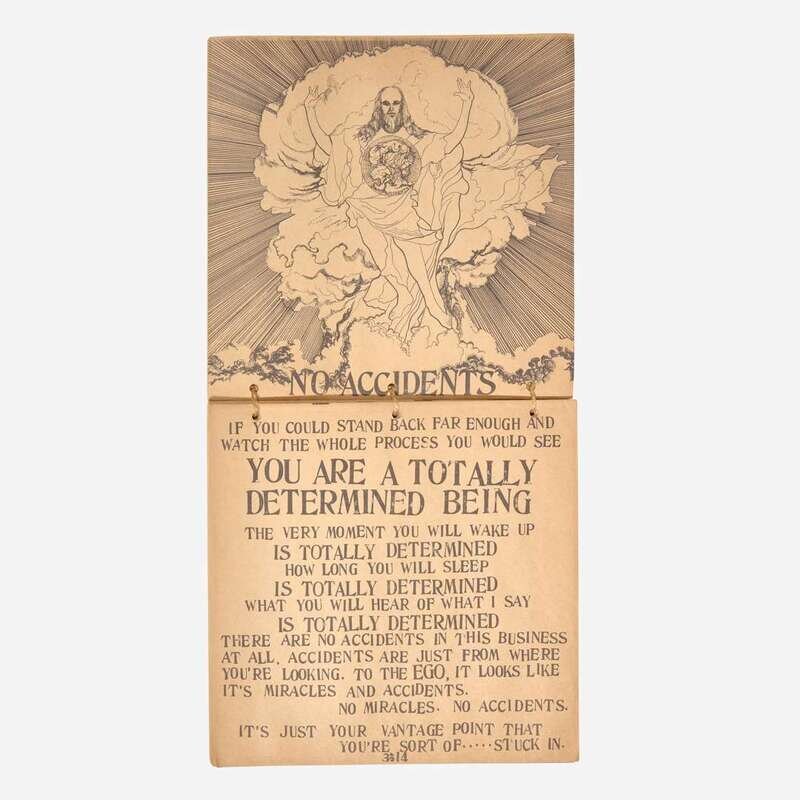 A scarce and well-preserved first edition of American guru and spiritual teacher Ram Dass's highly influential spiritual guidebook, the prototype for his landmark and best-selling book Be Here Now (1971). This book and its 1971 iteration were seminal publications in the Hippie and New Age movements of the 1970s, and helped popularize Eastern spirituality in the West. This book was originally mailed in a cardboard box with other ephemera, including a record and other booklets, but it rarely survives complete or intact.