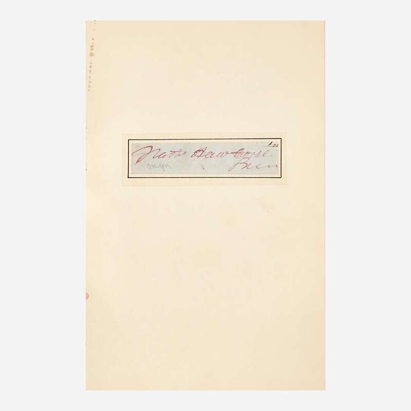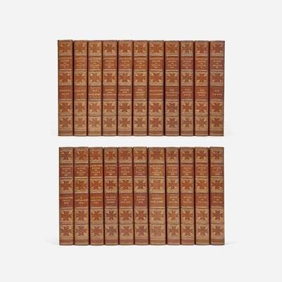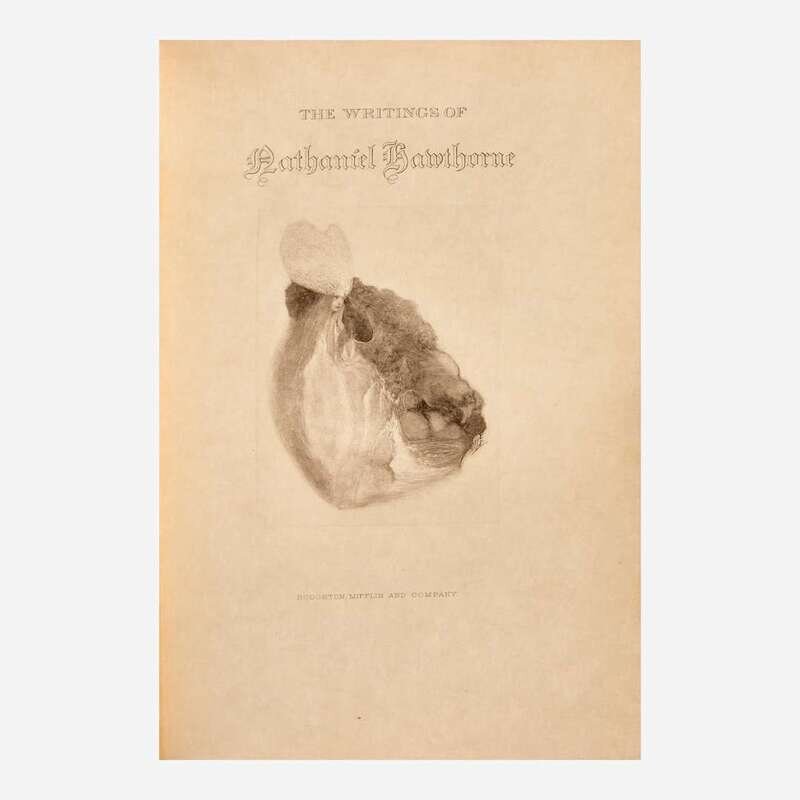 Boston and New York: Houghton, Mifflin and Company, 1900. In 22 volumes. Large-Paper Edition, #483/500 numbered copies. With Hawthorne's signature mounted and tipped in to Volume I. 8vo. Each volume illustrated with photogravure frontispiece, vignette title-page, and numerous photogravure plates, each with tissue guard. Contemporary three-quarter brown levant, stamped in gilt, over marbled paper-covered boards, spines faded; top edges gilt, other edges untrimmed; matching marbled endpapers. Clark B 21