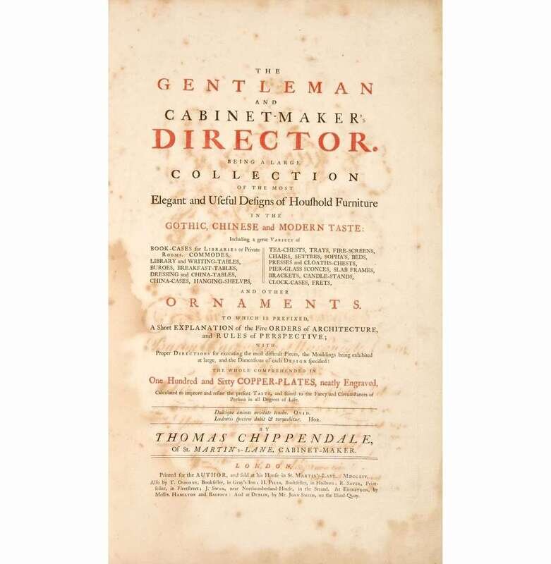 Chippendale established his firm in London in the mid-eighteenth century, and this pattern book, comprising domestic furniture designs in the Rococo, Gothic, and Chinese styles, functioned as a catalogue for his work. Upon publication, the Director was an instant success, and its breadth of designs was unmatched at the time and set the standard for the period. As a result, Chippendale's firm became incredibly popular in Great Britain, and later, in North America, as his work was adapted by numerous designers. The Director went through two other editions in Chippendale's lifetime: a virtually identical edition in 1755, and a revised and enlarged edition in 1762.