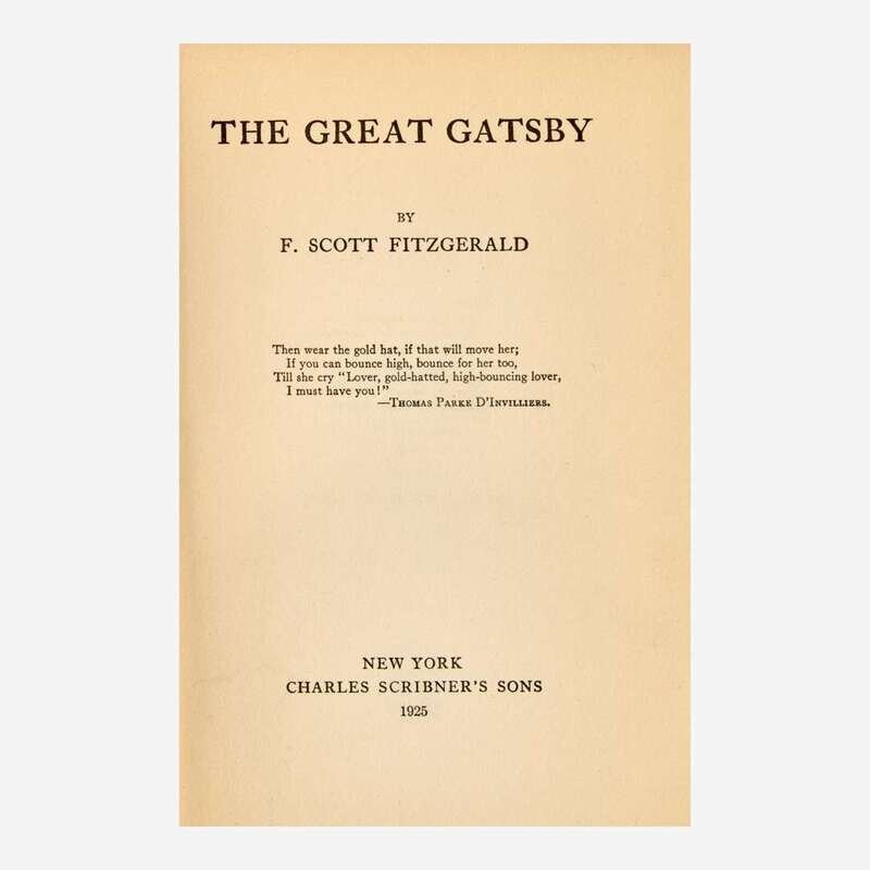 A superb first edition, first printing of Fitzgerald's Jazz Age masterpiece, first published on April 10, 1925.