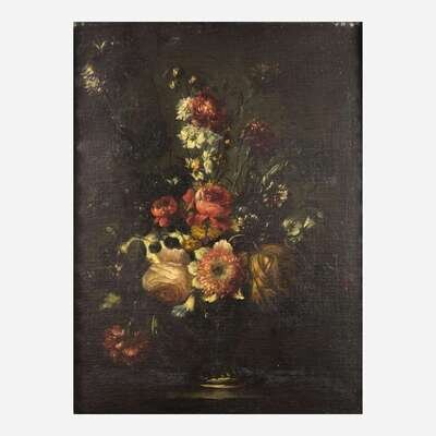 Follower of Jean-Baptiste Monnoyer (French, 1636–1699) Floral Still Life in a Silver Cup; together with a Companion (A Pair)