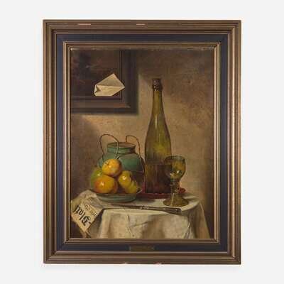 Charles Meer Webb (British, 1830–1895) Still Life with Newspaper, Letter and Apples