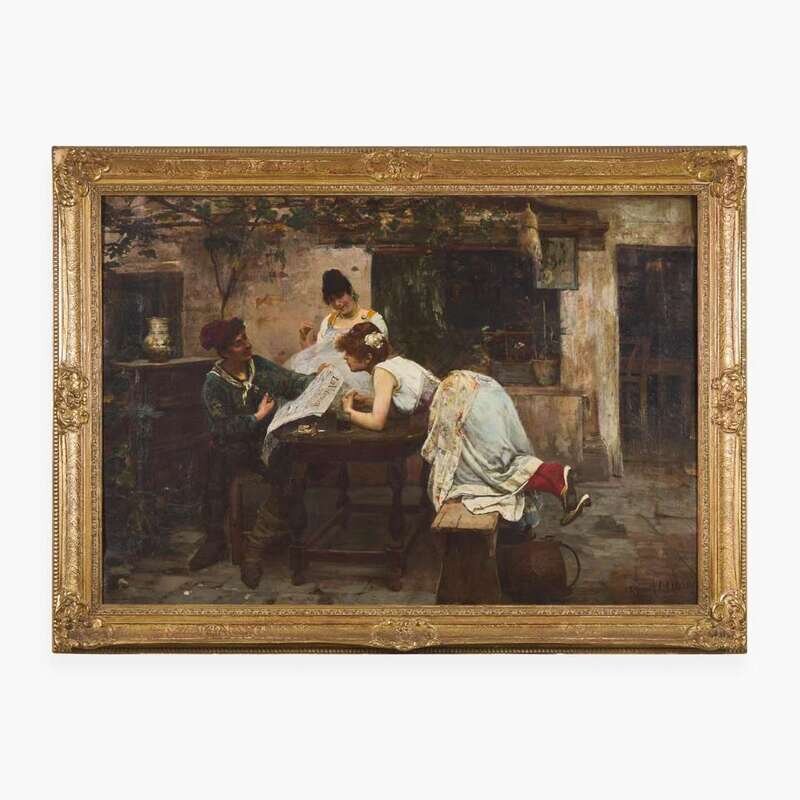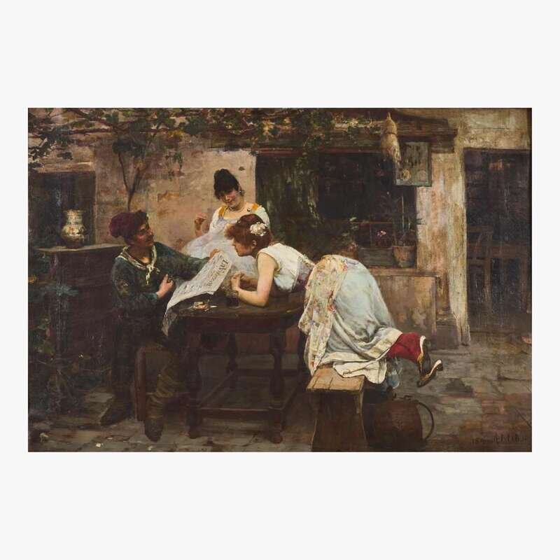 Alessandro Milesi (Italian, 1856–1945) Reading the News (La Venezia)