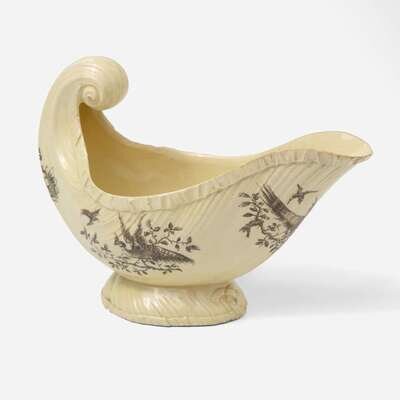 A Wedgwood "Exotic Birds" Decorated Queensware Sauce Boat UK, circa 1770
