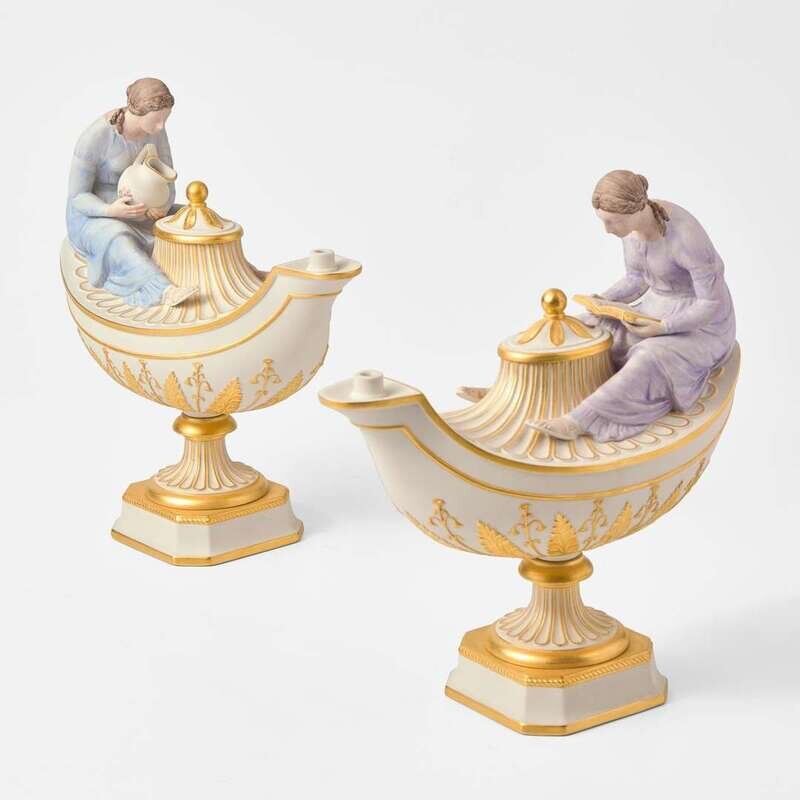 A Pair of Wedgwood White Jasperware Vestal Lamps UK, circa 2000