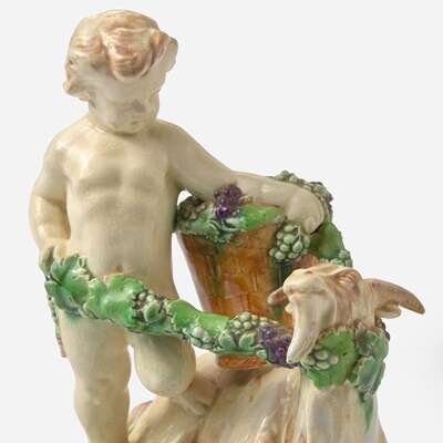 Representing a putto with goat, harvesting grapes.
