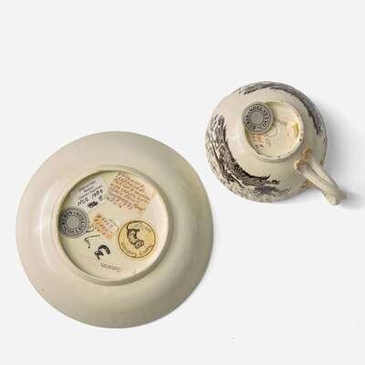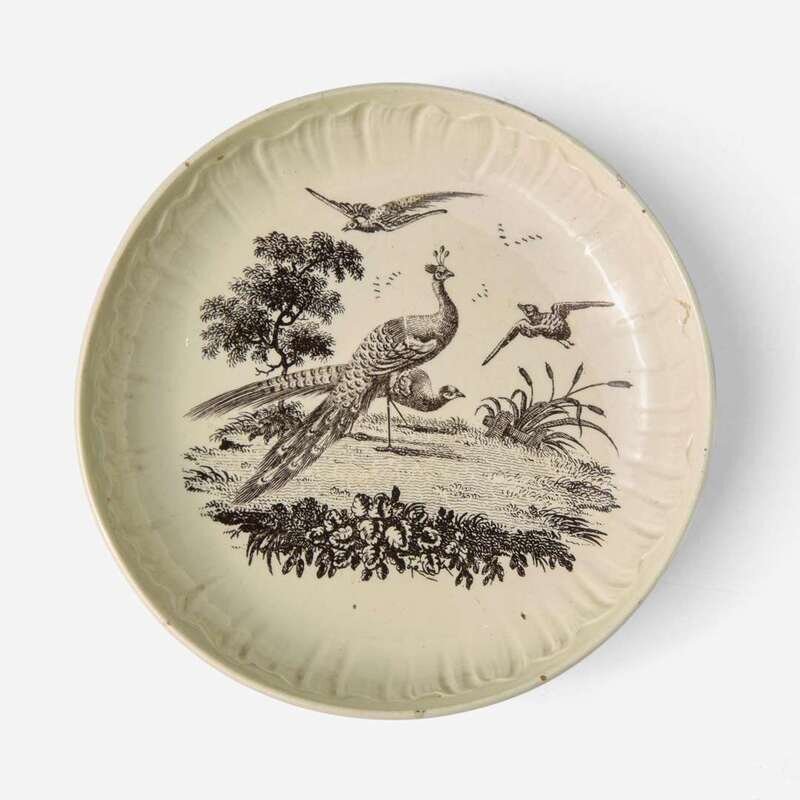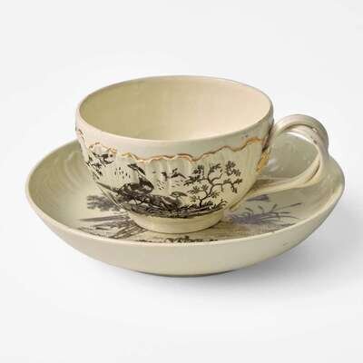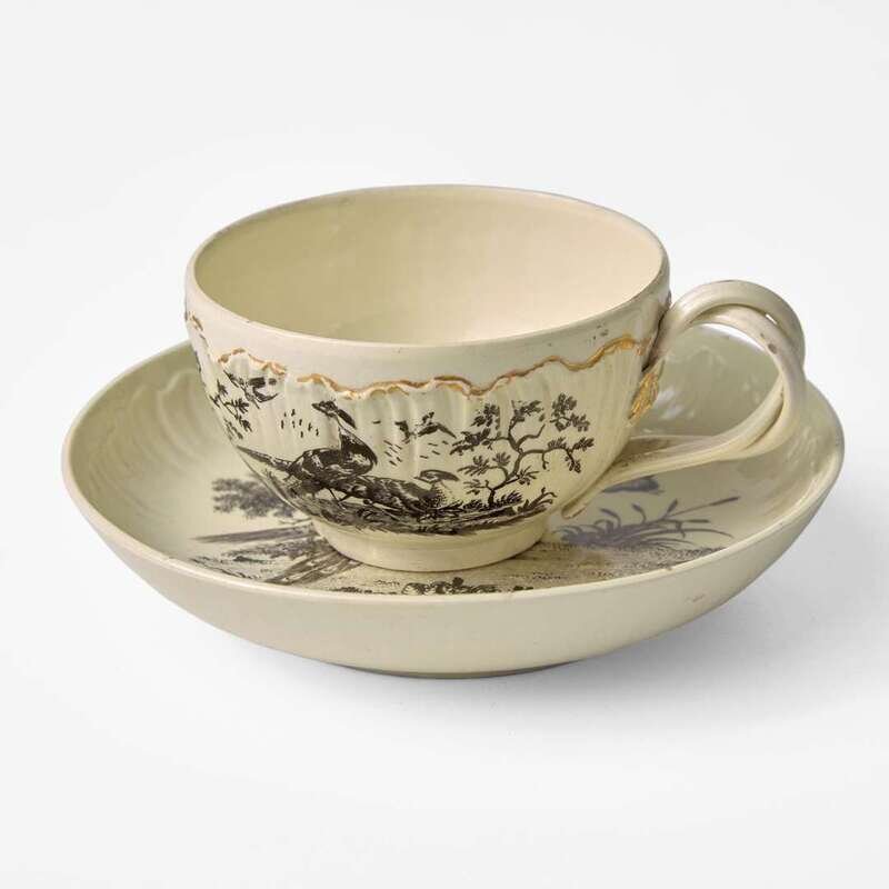 A Wedgwood Queensware Shell Edge Cup and Saucer with Exotic Birds Decoration UK, 1770s