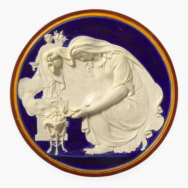 A Wedgwood Majolica "Sacrifice to Concordia" Plaque UK, 1860s