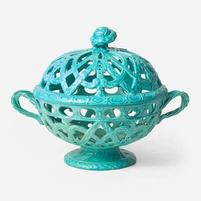 A Wedgwood Pierced Turquoise-Glazed Orange Basket and Cover UK, 1860s