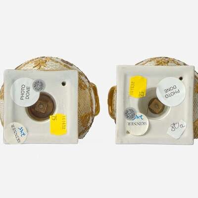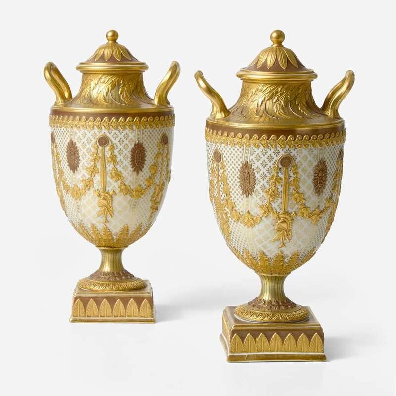 A Pair of Wedgwood Gilded and Bronzed Victoria Ware Vases with Covers UK, 1880s