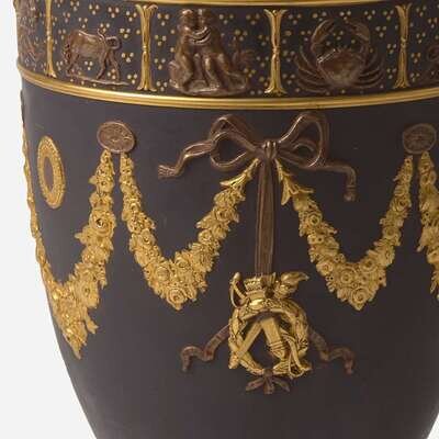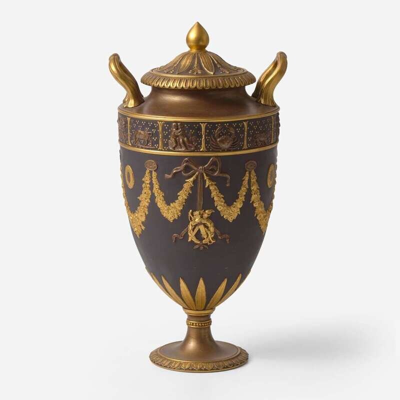 A Wedgwood Bronzed and Gilded Black Basalt Vase and Cover UK, circa 1900