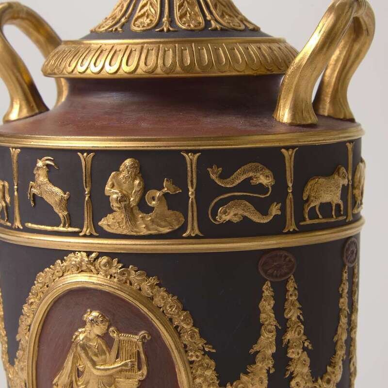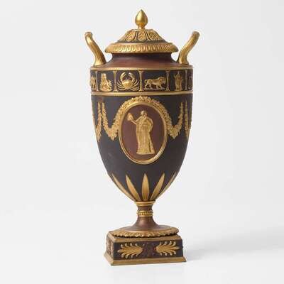 A Wedgwood Bronzed and Gilt Black Basalt Vase and Cover UK, circa 1890