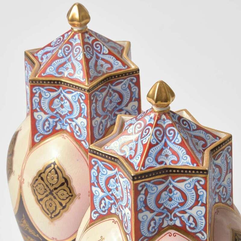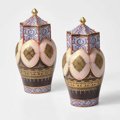 A Pair of Wedgwood Aesthetic Period Queensware Covered Vases UK, 1870s