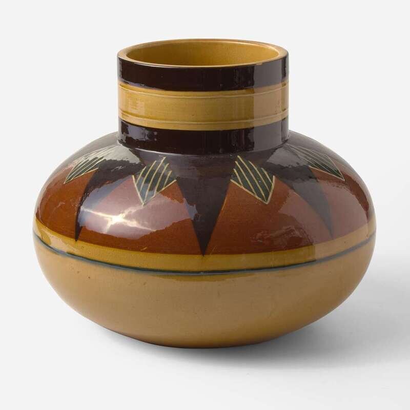 Slip-decorated in a geometric pattern. Marsden was briefly employed at Etruria as a decorator of Art Wares.