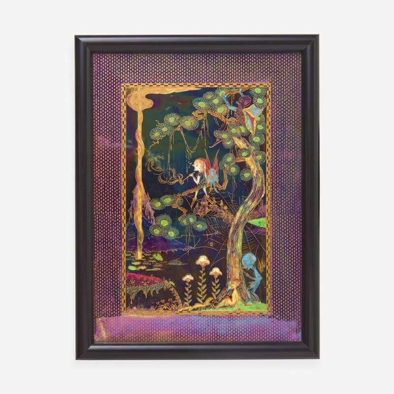 A Wedgwood Fairyland Lustre "Elves in a Pine Tree" Plaque UK, 1920s
